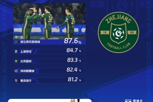 體育資訊4月3日訊 中超聯(lián)賽官方公布第4輪傳球成功率排行榜。在對(duì)陣深圳新鵬城的比賽中,浙江隊(duì)的傳球成功率為87.6%,位列本輪第一。