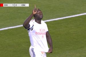 辛辛那提前鋒登凱伊第42分鐘破門,破門后丹基掀開球衣展示衣服,指天哀悼去世的浙江隊(duì)球員布彭扎。