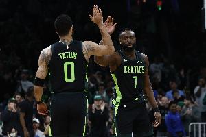 塔圖姆全場出戰(zhàn)40分鐘,投籃22中8,三分8中1,罰球4中0,得到17分14籃板4助攻1搶斷1蓋帽。杰倫-布朗14投6中,三分2中0,拿到16分。