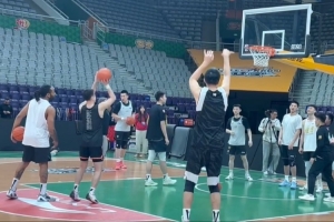 咪咕前方,賽前投籃訓(xùn)練,可以看出趙繼偉右手有明顯傷勢(shì)。