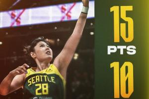 休賽期被交易至風(fēng)暴的中國女籃國手李月汝,首發(fā)出戰(zhàn)19分鐘,首節(jié)拿到9分創(chuàng)個人季前賽得分新高!半場拿到7籃板創(chuàng)個人季前賽籃板新高!全場比賽則是8投6中,罰球3中3,拿到15分(全場第2高)10籃板(全場最高)1助攻1搶斷。