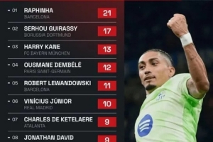 體育資訊5月9日訊 歐冠半決賽戰(zhàn)罷,媒體統(tǒng)計(jì)了本賽季歐冠參與進(jìn)球數(shù)榜單↓