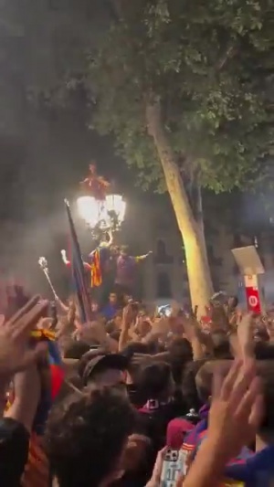 巴薩球迷們在球隊?wèi)c祝時,高喊梅西的名字。
