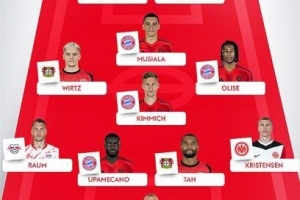 后衛(wèi):勞姆(RB萊比錫)、于帕梅卡諾(拜仁慕尼黑)、若納坦-塔(勒沃庫森)、R-克里斯滕森(法蘭克福)