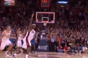 那場比賽最后1秒,騎士93-95落后2分,詹姆斯在三分線外一步接球直接干拔,命中壓哨三分,將大比分扳為1-1。
