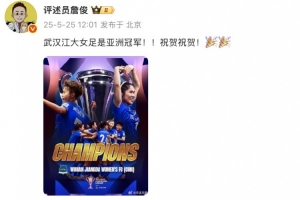 體育資訊5月25日訊 今天,詹俊更新社媒,祝賀武漢車谷江大女足問(wèn)鼎女足亞冠冠軍。
