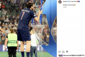 賽后,巴黎前鋒克瓦拉茨赫利亞更新社媒曬照并配文寫道:此地唯屬巴黎???? 夢想終成真??