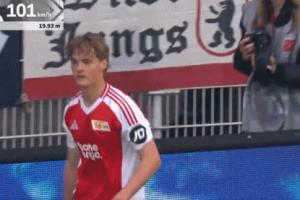 本賽季德甲第30輪,柏林聯(lián)合4-4戰(zhàn)平斯圖加特,奎菲爾德在比賽第38分鐘轟入世界波。