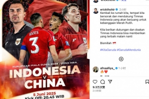 印尼足協(xié)主席托希爾更新社媒,曬出本場比賽的海報,并配文寫道:“回到我們的主場,讓我們?yōu)榧缲搰覙s譽的印尼隊加油助威吧!希望通過我們的支持,幫助印尼隊今晚取得理想結(jié)果?!?/p>