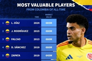 哥倫比亞球員德轉(zhuǎn)歷史身價排名: