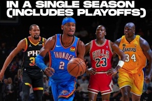 體育資訊6月10日訊 據(jù)統(tǒng)計(jì),本賽季當(dāng)選MVP的亞歷山大已經(jīng)砍下了3000+的得分(包括常規(guī)賽與季后賽),是歷史上第四位在當(dāng)選MVP賽季,做到這一點(diǎn)的球員。