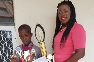 視頻中VJ收到了一張童年照片,照片中自己拿著獎杯和媽媽合影。