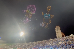 3000架無(wú)人機(jī)出現(xiàn)在了揚(yáng)州體育公園體育場(chǎng)上空,組成了各種代表性的圖案,為蘇超聯(lián)賽助興。