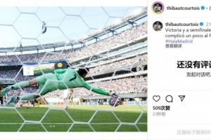庫爾圖瓦社媒曬出撲救的照片,配文:“取勝并晉級半決賽!最后時(shí)刻有點(diǎn)棘手,但…????Hala Madrid”