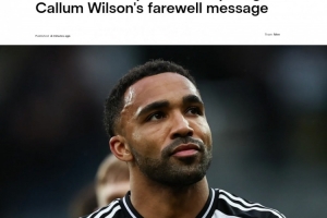 體育資訊7月7日訊 紐卡斯?fàn)柟倬W(wǎng)消息,33歲的英格蘭前鋒卡勒姆-威爾遜合同到期,深情告別紐卡斯?fàn)枴?/p>
